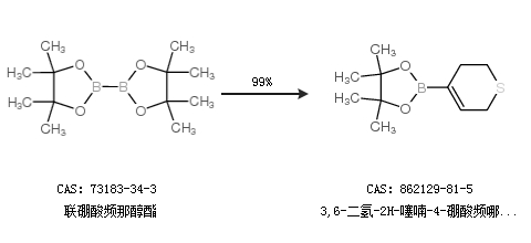 1.通过联硼酸频那醇酯合成3,6-二氢-2H-噻喃-4-硼酸频哪醇酯,收率约99%;
