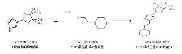 1.通过4-吡唑硼酸频哪醇酯和N-(2-氯乙基)吗啉盐酸盐合成1-(2-吗啉乙基)-1H-吡唑-4-硼酸频那醇酯