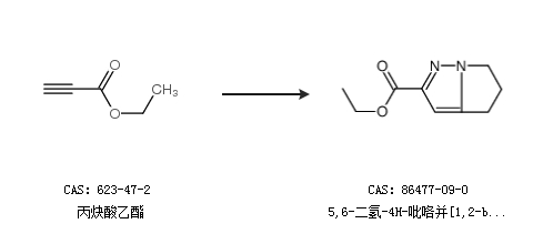 2.通过丙炔酸乙酯合成5,6-二氢-4H-吡咯并[1,2-b]吡唑-2-羧酸乙酯