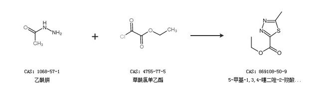 1.通过乙酰肼和草酰氯单乙酯合成5-甲基-1,3,4-噻二唑-2-羧酸乙酯