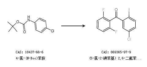 2.通过4-氯-(N-Boc)苯胺合成(5-氯-2-碘苯基) 2,6-二氟苯甲烷