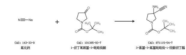 1.通过氰化钠和1-叔丁氧碳基-3-吡咯烷酮合成3-氨基-3-氰基吡咯烷-1-羧酸叔丁酯