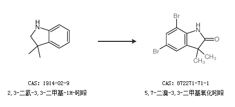 2.通过1,2-二氢-3,3-二甲基-2-氧代-3H-吲哚合成5,7-二溴-3,3-二甲基氧化吲哚