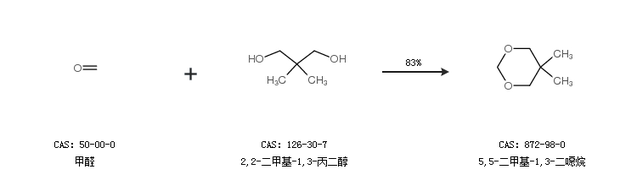 1.通过甲醛和2,2-二甲基-1,3-丙二醇合成5,5-二甲基-1,3-二噁烷,收率约83%;