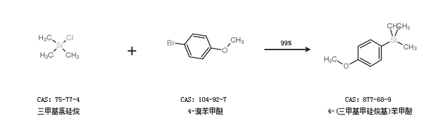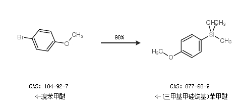 2.通过4-溴苯甲醚合成4-(三甲基甲硅烷基)苯甲醚,收率约98%;