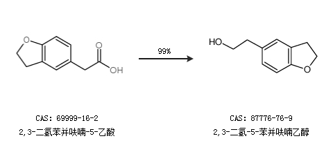 1.通过2,3-二氢苯并呋喃-5-乙酸合成2,3-二氢-5-苯并呋喃乙醇,收率约99%;
