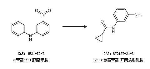 1.通过3-硝基苯胺合成N-(3-氨基苯基)环丙烷羧酰胺