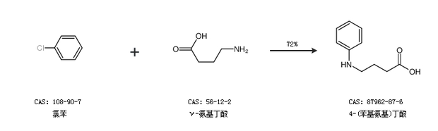 1.通过氯苯和γ-氨基丁酸合成4-(苯基氨基)丁酸,收率约72%;