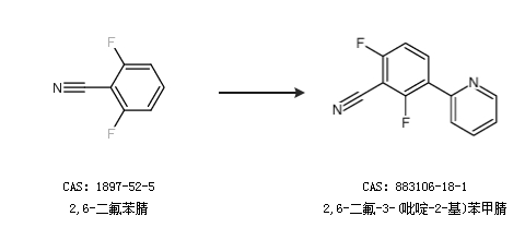 2.通过2,6-二氟苯腈合成2,6-二氟-3-(吡啶-2-基)苯甲腈