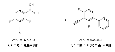 1.通过2,4-二氟-3-氰基苯硼酸合成2,6-二氟-3-(吡啶-2-基)苯甲腈