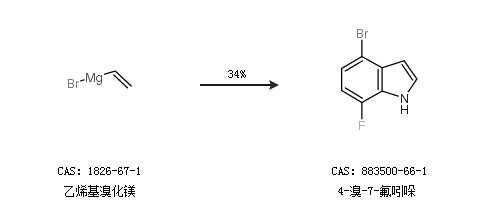 1.通过乙烯基溴化镁合成4-溴-7-氟吲哚,收率约34%;