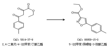 2.通过2,4-二氧代-4-(对甲苯)丁酸乙酯合成5-(对甲苯)异噁唑-3-羧酸乙酯