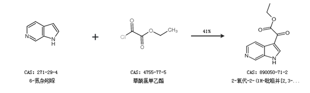 1.通过6-氮杂吲哚和草酰氯单乙酯合成2-氧代-2-(1H-吡咯并[2,3-c]吡啶-3-基)乙酸乙酯,收率约41%;