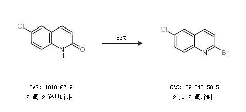 1.通过6-氯-2-羟基喹啉合成2-溴-6-氯喹啉,收率约83%;