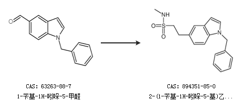 1.通过1-苄基-1H-吲哚-5-甲醛合成2-(1-苄基-1H-吲哚-5-基)乙烷磺酸甲酰胺