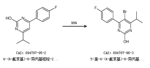 1.通过4-(4-氟苯基)-6-异丙基嘧啶-2-醇合成5-溴-4-(4-氟苯基)-6-异丙基嘧啶-2-醇,收率约99%;