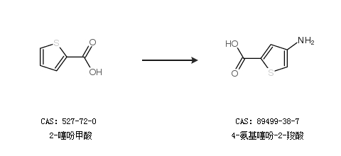 2.通过2-噻吩甲酸合成4-氨基噻吩-2-羧酸