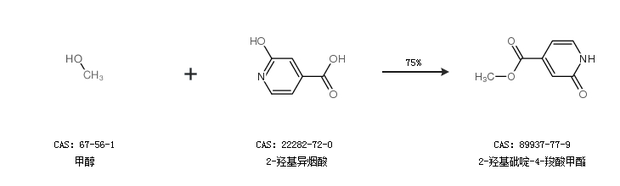 1.通过甲醇和2-羟基异烟酸合成2-羟基砒啶-4-羧酸甲酯,收率约75%;
