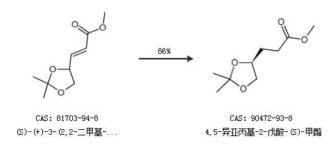 1.通过(S)-(+)-3-(2,2-二甲基-1,3-二噁戊环-4-基)-顺-2-丙烯酸甲酯合成4,5-异亚丙基-2-戊酸-(S)-甲酯,收率约86%;