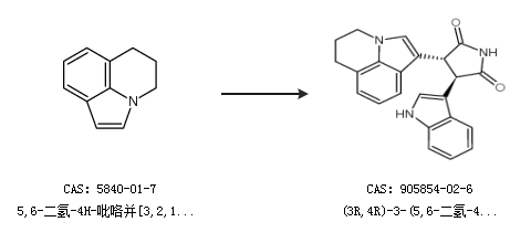 中文名称 (3R,4R)-3-(5,6-二氢-4H-吡咯并[3,2,1-ij]喹啉)-4-(1H-吲哚)-2,5-吡咯烷二酮