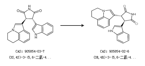 2.通过(3S,4S)-3-(5,6-二氢-4H-吡咯并[3,2,1-ij]喹啉)-4-(1H-吲哚)-2,5-吡咯烷二酮合成(3R,4R)-3-(5,6-二氢-4H-吡咯并[3,2,1-ij]喹啉)-4-(1H-吲哚)-2,5-吡咯烷二酮