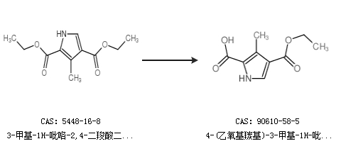 1.通过3-甲基-1H-吡咯-2,4-二羧酸二乙酯合成4-(乙氧基羰基)-3-甲基-1H-吡咯-2-羧酸