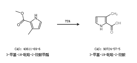 1.通过3-甲基-1H-吡咯-2-羧酸甲酯合成3-甲基-1H-吡咯-2-羧酸,收率约75%;