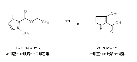 2.通过3-甲基-1H-吡咯-2-甲酸乙酯合成3-甲基-1H-吡咯-2-羧酸,收率约83%;