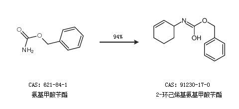 1.通过氨基甲酸苄酯合成2-环己烯基氨基甲酸苄酯,收率约94%;