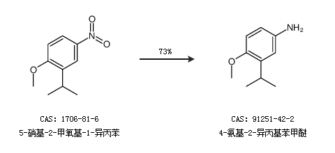 1.通过5-硝基-2-甲氧基-1-异丙苯合成4-氨基-2-异丙基苯甲醚,收率约73%;