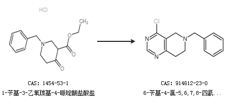 2.通过1-苄基-3-乙氧羰基-4-哌啶酮盐酸盐合成6-苄基-4-氯-5,6,7,8-四氢吡啶并[4,3-d]嘧啶