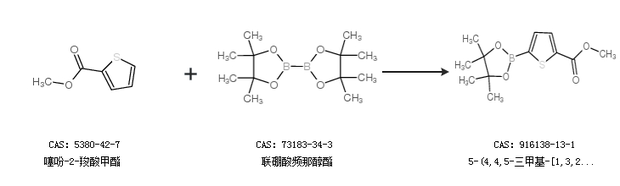2.通过噻吩-2-羧酸甲酯和联硼酸频那醇酯合成5-(4,4,5-三甲基-[1,3,2]二氧硼戊环-2-基)-噻吩-2-甲酸甲酯