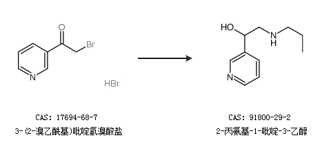 2.通过3-(2-溴乙酰基)吡啶氢溴酸盐合成2-丙氨基-1-吡啶-3-乙醇