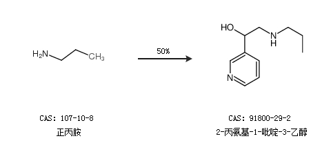 1.通过正丙胺合成2-丙氨基-1-吡啶-3-乙醇,收率约50%;