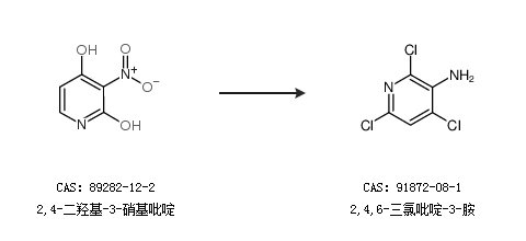 2.通过2,4-二羟基-3-硝基吡啶合成2,4,6-三氯吡啶-3-胺