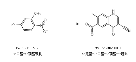 英文别名 3-Quinolinecarbonitrile,4-hydroxy-7-methyl-6-nitro;3-Quinolinecarbonitrile,1,4-dihydro-7-methyl-6-nitro-4-oxo;
