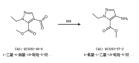 1.通过1-乙基-4-硝基-1H-吡唑-5-羧酸甲酯合成4-氨基-1-乙基-1H-吡唑-5-羧酸甲酯,收率约99%;