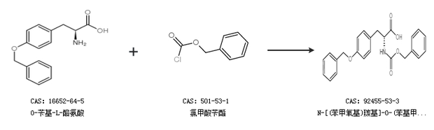 1.通过O-苄基-L-酪氨酸和氯甲酸苄酯合成N-[(苯甲氧基)羰基]-O-(苯基甲基)-D-酪氨酸