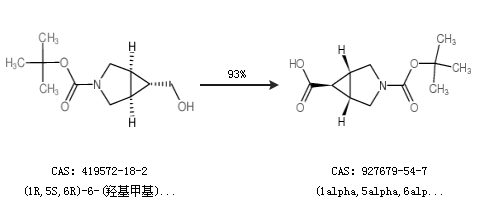 1.通过(1R,5S,6R)-6-(羟基甲基)-3-氮杂双环[3.1.0]己烷-3-羧酸叔丁酯合成(1alpha,5alpha,6alpha)-3-氮杂双环[3.1.0]己烷-3,6-二甲酸 3-叔丁酯,收率约93%;