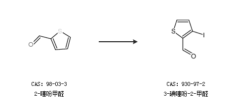 1.通过2-噻吩甲醛合成3-碘噻吩-2-甲醛