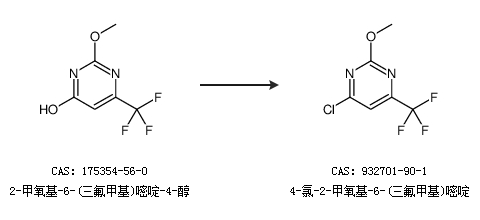 1.通过2-甲氧基-6-(三氟甲基)嘧啶-4-醇合成4-氯-2-甲氧基-6-(三氟甲基)嘧啶