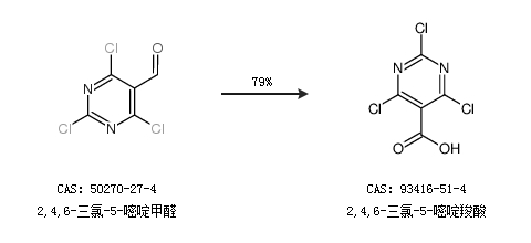 2.通过2,4,6-三氯-5-嘧啶甲醛合成2,4,6-三氯-5-嘧啶羧酸,收率约79%;