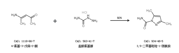 2.通过4-氨基-3-戊烯-2-酮和盐酸氨基脲合成3,5-二甲基吡唑-1-羰酰胺,收率约92%;