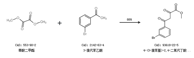 1.通过草酸二甲酯和3-溴代苯乙酮合成4-(3-溴苯基)-2,4-二氧代丁酸甲酯,收率约88%;