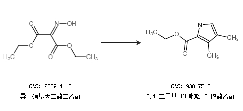 2.通过异亚硝基丙二酸二乙酯合成3,4-二甲基-1H-吡咯-2-羧酸乙酯