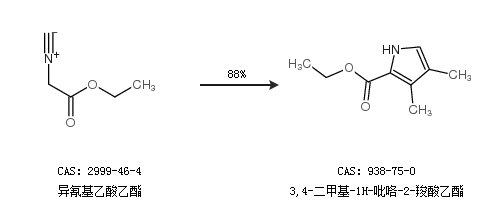 1.通过异氰基乙酸乙酯合成3,4-二甲基-1H-吡咯-2-羧酸乙酯,收率约88%;