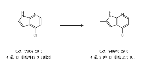 1.通过4-氯-1H-吡咯并[2,3-b]吡啶合成4-氯-2-碘-1H-吡咯[2,3-B]吡啶