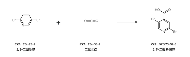 1.通过2,5-二溴吡啶和二氧化碳合成2,5-二溴异烟酸