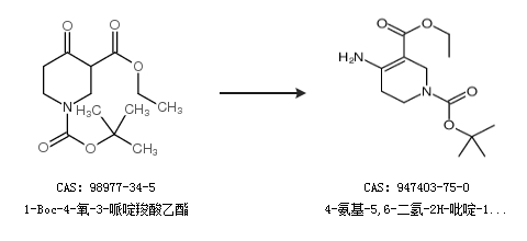 1.通过1-Boc-4-氧-3-哌啶羧酸乙酯合成4-氨基-5,6-二氢-2H-吡啶-1,3-二羧酸1-叔丁酯3-乙酯