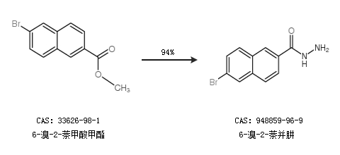 1.通过6-溴-2-萘甲酸甲酯合成6-溴-2-萘并肼,收率约94%;
